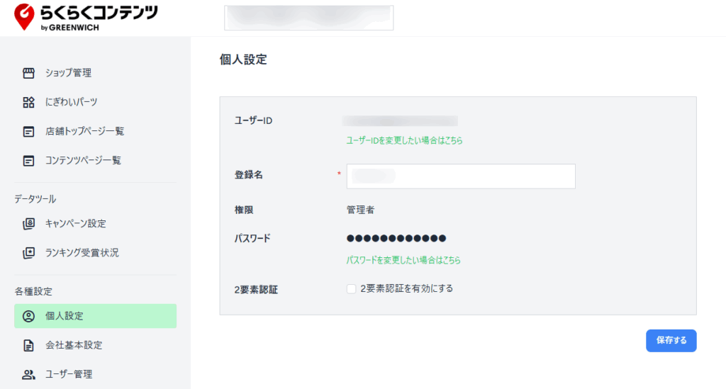 らくらくコンテンツにお申込みいただいた管理者情報の確認・編集が行えます。